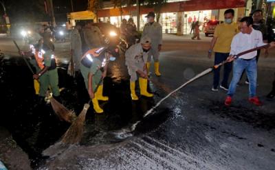Petugas Bersihkan Abu Vulkanik Merapi di Jalanan Pusat Kota Magelang