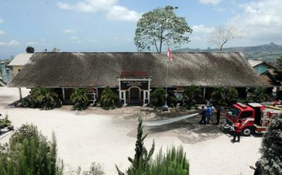 Pemadam Bersihkan Abu Vulkanik yang Menempel di Lingkungan Sekolah Dasar Boyolali