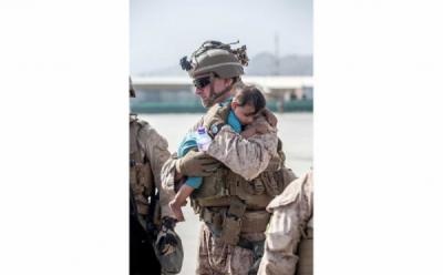 Potret Tentara Marinir AS Menggendong Bayi Bikin Hati Terenyuh