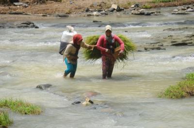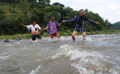 Belum Ada Akses Jembatan Desa, Warga Lintasi Aliran Sungai Bolo