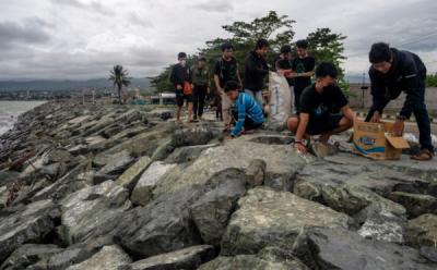 Mahasiswa Peduli Lingkungan Gelar Aksi Bersihkan Sampah di Lokasi Bekas Tsunami Palu