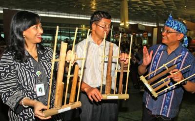 Ajang Promosi Pariwisata, Angklung Dikenalkan Kepada Penumpang di Terminal 3
