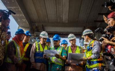Kunjungi Bendung Katulampa, Gubernur Anies Berswafoto dengan Wali Kota Bima Arya
