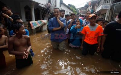 Anies Baswedan Rela Basah-basahan Lihat Kondisi Banjir Rawajati