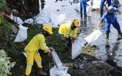 Antisipasi Genangan, Petugas Gabungan Bareng Warga Kerja Bakti Bersihkan Sampah