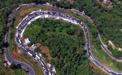 Foto Udara Kemacetan Arus Balik Lebaran di Jalur Selatan Lingkar Gentong
