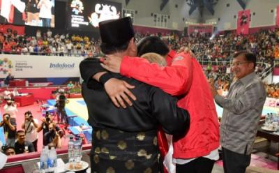 Foto Keakraban Jokowi dan Prabowo pada Laga Final Pencak Silat Asian Games 2018