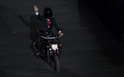 Aksi Presiden Jokowi Naik Moge pada Pembukaan Asian Games 2018