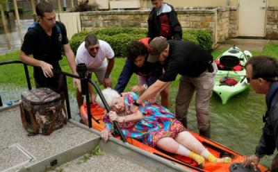 Gunakan Perahu Kano, Tim Penyelamat Evakuasi Seorang Nenek di Texas