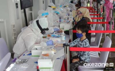 Anak Kecil Ikut Rapid Test di Lapangan Kantor Kecamatan Pamulang