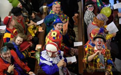 Mengenang Bapak Badut Modern, Gereja di London Dipenuhi Badut