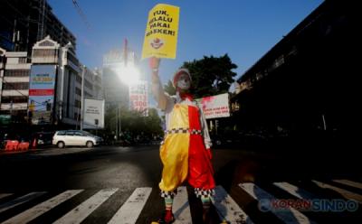 Peduli Kesehatan, Badut Ini Kampanyekan Wajib Pakai Masker kepada Masyarakat