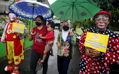 Lucunya Para Badut Ajak Warga Ikut Vaksinasi Covid-19