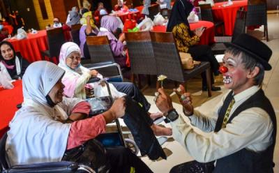 Aksi Badut di Tasikmalaya Hibur Warga Lansia