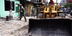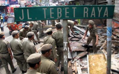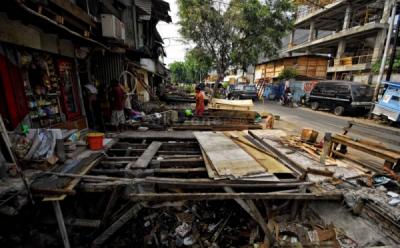 Pol PP Bongkar Bangunan Liar Kolong Flyover Roxy