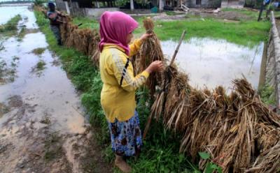 Petani Desa Nga Aceh Jemur Padi yang Terendam Banjir