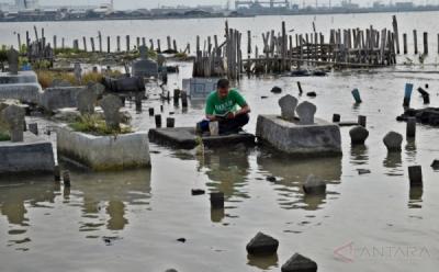 Ziarah di Pemakaman Umum yang Terendam Banjir Rob