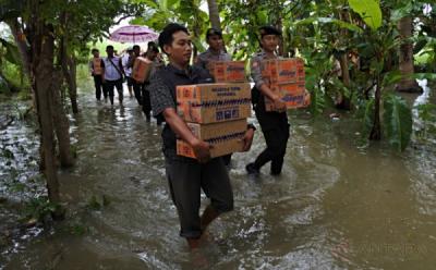 Susuri Jalan Terendam Banjir, Polres Situbondo Salurkan Bantuan Korban Banjir