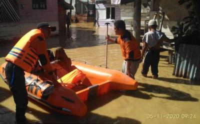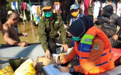 Anggota Damkar Evakuasi Warga Terdampak Banjir di Pejaten Pakai Perahu Karet