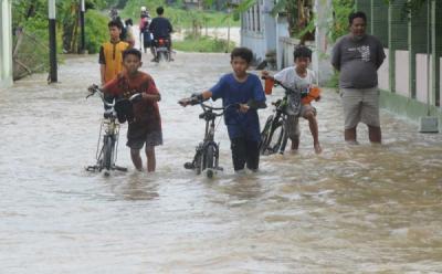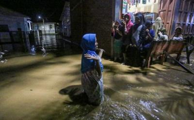 Banjir Landa Perkampungan Kota Solo Akibat Meluapnya Anak Sungai Bengawan Solo