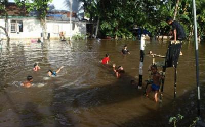 Kalbar Dilanda Banjir, Anak-Anak Happy Main air