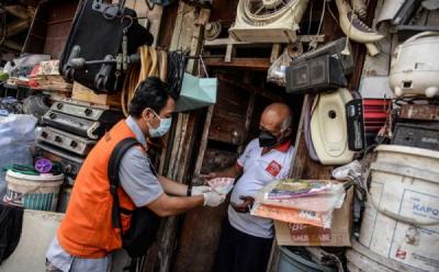 Penyaluran Bansos Tunai di Gang Sempit Jakarta