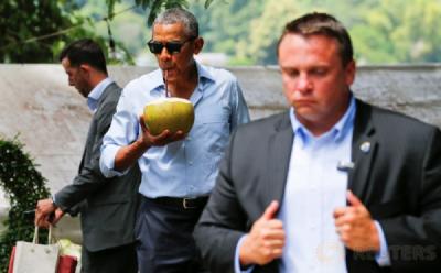 Asyiknya Presiden Obama Nikmati Segarnya Air Kelapa