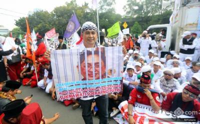 Alumni 212 Geruduk Kantor Bareskrim Polri Tuntut Proses Hukum Sukmawati