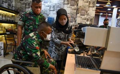 Anggota TNI Penyandang Disabiltas Mengikuti Pelatihan Barista