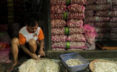 Intip Aktivitas Pedagang Bawang Putih di Pasar Kebayoran Lama