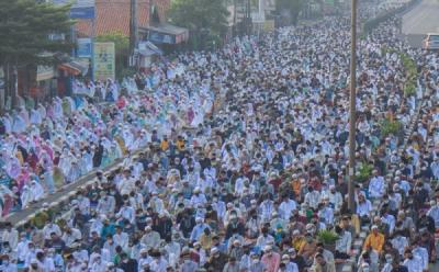 Ribuan Warga Bekasi Tumpah Ruah Sampai ke Jalan Ikuti Sholat Idul Fitri