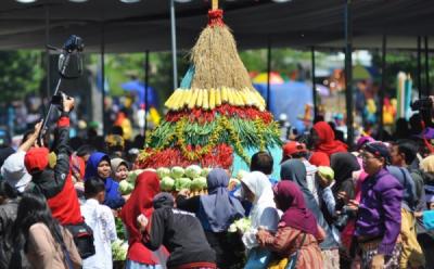 Serunya Berebut Gunungan Hasil Pertanian pada Kirab Budaya Merti Desa