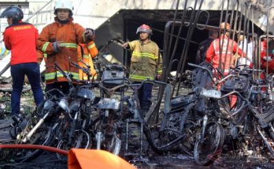 Bangkai-Bangkai Sepeda Motor di Lokasi Ledakan Gereja Pantekosta Pusat Surabaya
