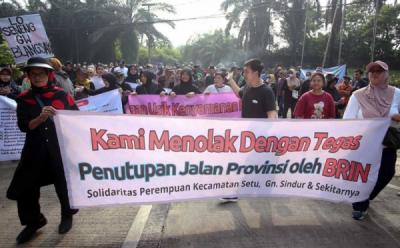 Warga Tangsel Demo Tolak Penutupan Jalan oleh BRIN