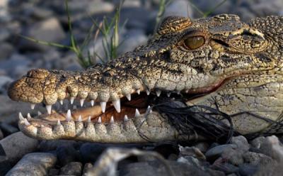 Anak Buaya Tersangkut Tali Rafia saat Mencari Makan