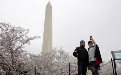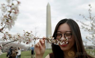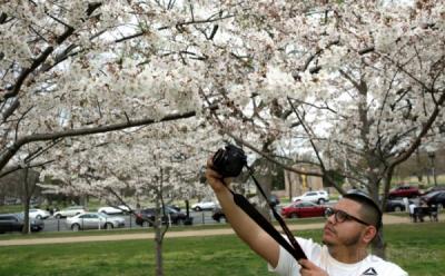 Turis Abadikan Momen Mekarnya Bunga Sakura di Washington