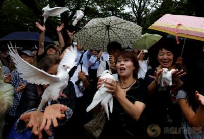 Pelepasan Burung Merpati sebagai Simbol Perdamaian Dunia di Jepang