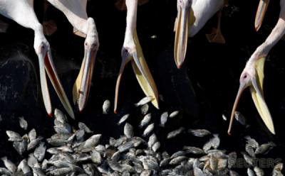Serunya Burung Pelikan Saat Berebut Ikan di Waduk Mishmar Hasharon Israel