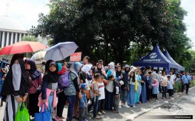 Begini Antrean Warga Naik Bus Wisata Keliling Ibu Kota