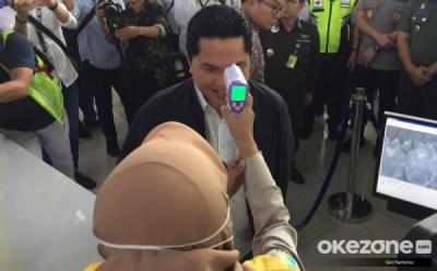 Menteri BUMN Erick Thohir Dicek Suhu Tubuh saat Kunjungi Bandara Soetta