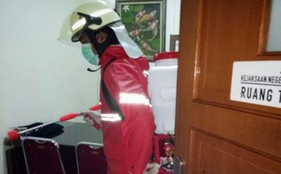 Gedung Kejaksaan Tinggi Jakarta Timur Disemprot Disinfektan
