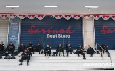 Anggota TNI dan Polisi Menjaga Pusat Perbelanjaan Sarinah