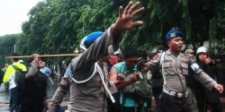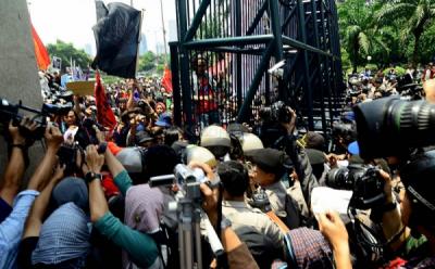 Pendemo di Makassar Rusak Pospol & Blokir Jalan