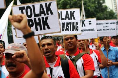 Pekerja Pelabuhan Geruduk Kantor Suku Dinas Tenaga Kerja dan Transmigrasi DKI Jakarta