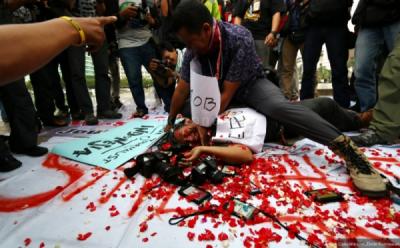 Aksi Stop Kekerasan terhadap Wartawan dalam Unjuk Rasa di DPR