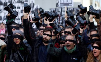 Angkat Kamera, Fotografer Protes PHK 300 Karyawan di Buenos Aires Argentina