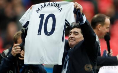 Diego Maradona Nongol di Laga Tottenham Hotspur Kontra Liverpool