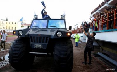 Diperkenalkan di Hadapan Suporter Dynamo Brest, Maradona Naik Kendaraan Taktis