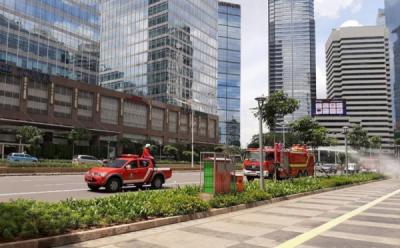 Penyemprotan Disinfektan Sepanjang Jalan MH Thamrin