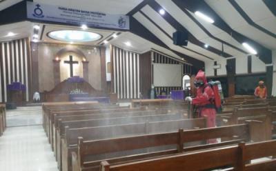 Gereja HKBP Kramat Jati Disemprot Cairan Disinfektan